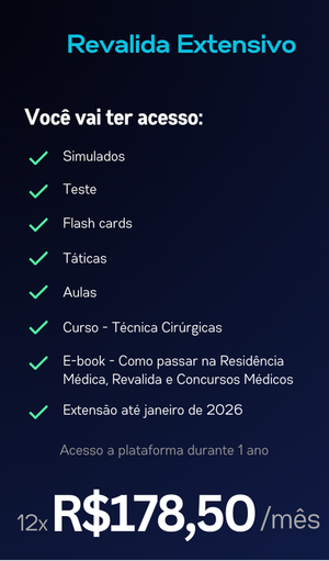 As questões discursivas podem parecer um grande desafio, mas com a Med Trunfo, elas se tornam sua melhor oportunidade de se destacar. Nossa plataforma oferece simulados realistas que simulam a pressão do dia da prova, seguidos por correções minuciosas e comentários detalhados. Assim, você não apenas entende o que as bancas esperam, mas também desenvolve o raciocínio e a clareza necessários para atingir a excelência.